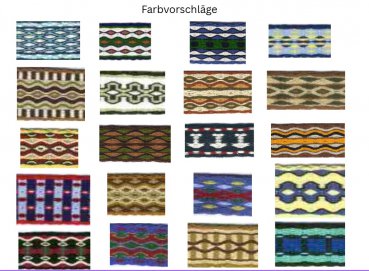 Das Musterbuch 3 enthält 30 Musterentwürfe (Schnurbindung), die den eher einfachen Anforderungen eines "Neulings" entsprechen. Die Bortenmuster werden mit bis zu 60 Brettchen gewebt.