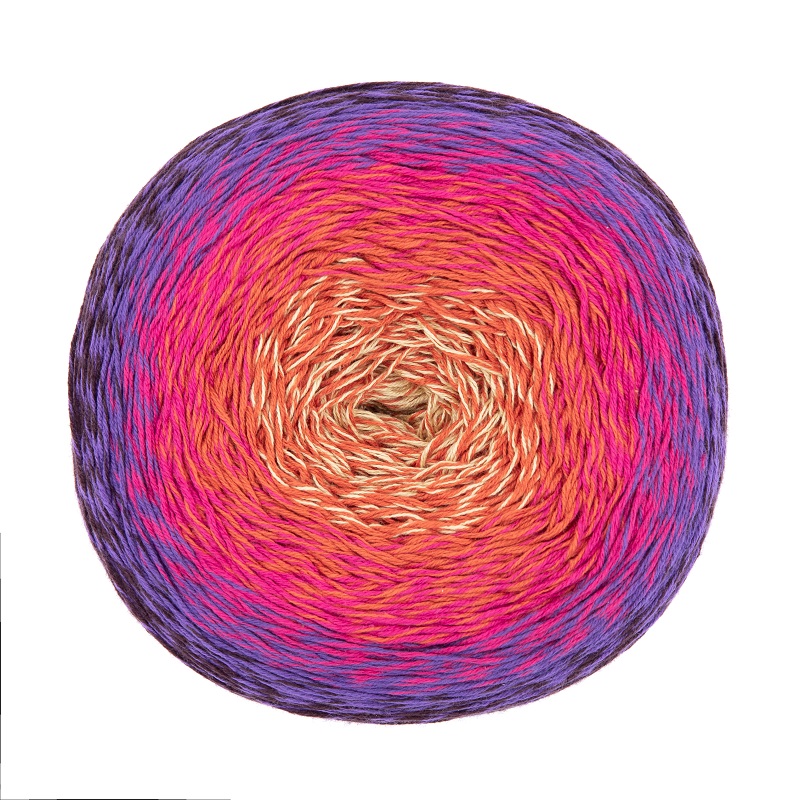 Hier haben sich alle strahlenden Farbspektren des Regenbogens zusammengeschlossen, um gemeinsam ein buntes Lichtband auf das Garn Saragossa zu werfen. Ihre Mission ist es, neue Farbe in deinen Kleiderschrank zu bringen. Und sie lassen dir sogar die Wahl: du kannst dir nämlich aussuchen, mit welcher Nuance dein Kreativprojekt beginnen soll – denn das Knäuel kann sowohl von innen nach außen als auch umgekehrt verarbeitet werden. Und es hat noch viel mehr zu bieten: durch einen 50-prozentigen Baumwoll-Anteil entsteht ein angenehmes Tragegefühl mit einer herrlich anschmiegsamen und sinnigen Struktur. Auch von dem geringen Materialverbrauch wirst du begeistert sein. Noch dazu ist es dank des ausgefeilten Materialmix sehr pflegeleicht und formstabiler als reine Baumwolle. Ein Knäuel reicht genau für ein Dreieckstuch. Die Farben des Garns wechseln vom Anfang bis zum Ende, kein Farbabschnitt wiederholt sich, gleichzeitig sind die Farbübergänge knotenfrei gespliced, so entsteht ein wunderbarer Farbübergang direkt aus dem Knäuel ohne Fäden vernähen und Anknoten.