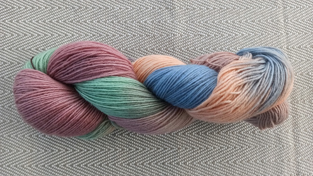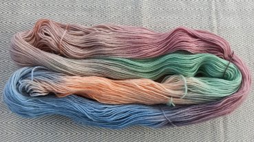 Handgefärbte Sockenwolle mit Farbverlauf in Pastellfarben