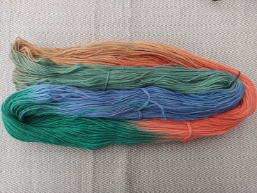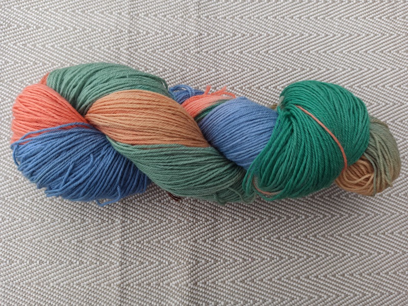 Handgefärbte Sockenwolle mit Farbverlauf in bunt