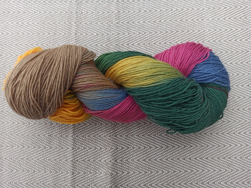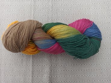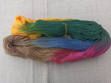 Handgefärbte Sockenwolle mit Farbverlauf in bunt