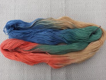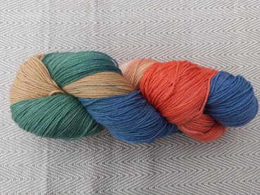 Handgefärbte Sockenwolle mit Farbverlauf in bunt