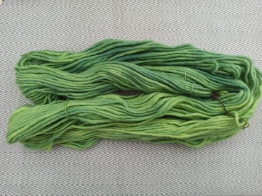 Bei Färbungen mit Naturfarbstoffen kann es immer wieder vorkommen, daß das Garn nicht so gleichmäßig durchgefärbt ist wie bei einer industriellen chemischen Färbung. Dieses Garn wird in liebevoller Handarbeit in kleinen Mengen gefärbt. Geringe Farbunterschiede machen den Reiz dieser Garne aus.