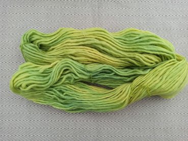 Bei Färbungen mit Naturfarbstoffen kann es immer wieder vorkommen, daß das Garn nicht so gleichmäßig durchgefärbt ist wie bei einer industriellen chemischen Färbung. Dieses Garn wird in liebevoller Handarbeit in kleinen Mengen gefärbt. Geringe Farbunterschiede machen den Reiz dieser Garne aus.